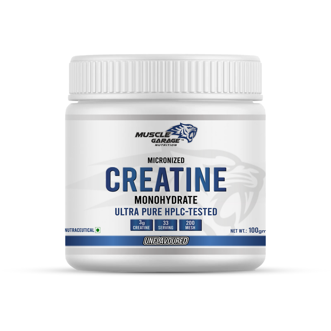 This is a premium-quality sports nutrition supplement from Muscle Garage, formulated with pure micronized creatine monohydrate for enhanced muscle performance, strength, and endurance.